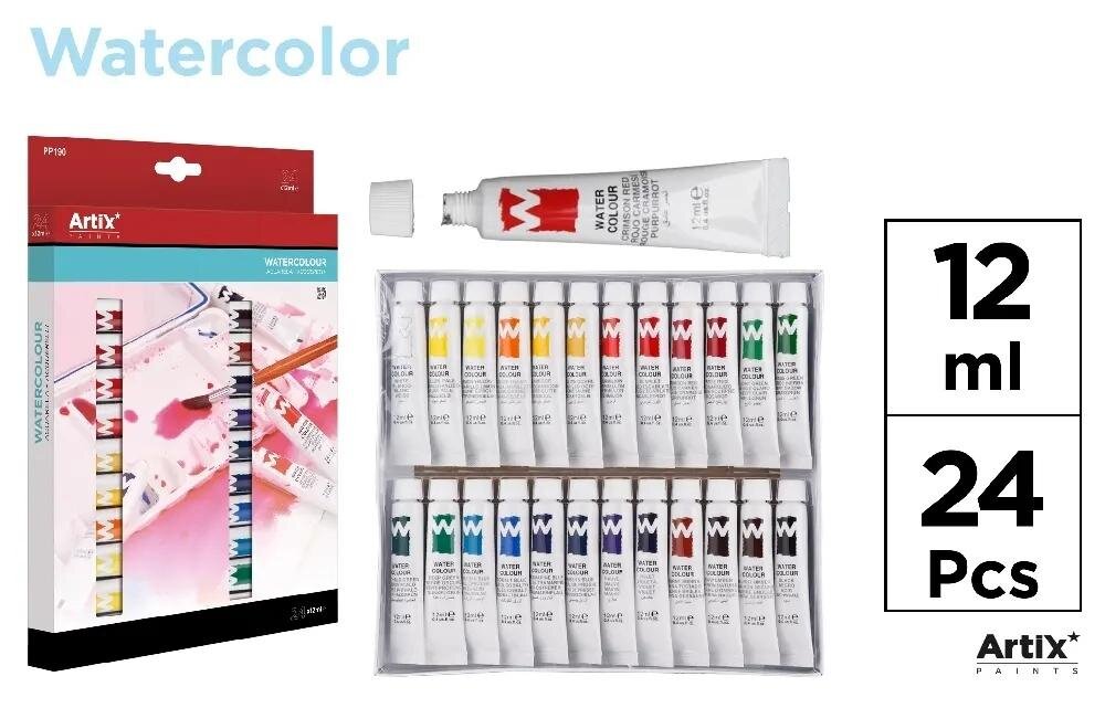 Zestaw farb akwarelowych 24 kolory 24x12ml/opak Artix przeczytaj całość