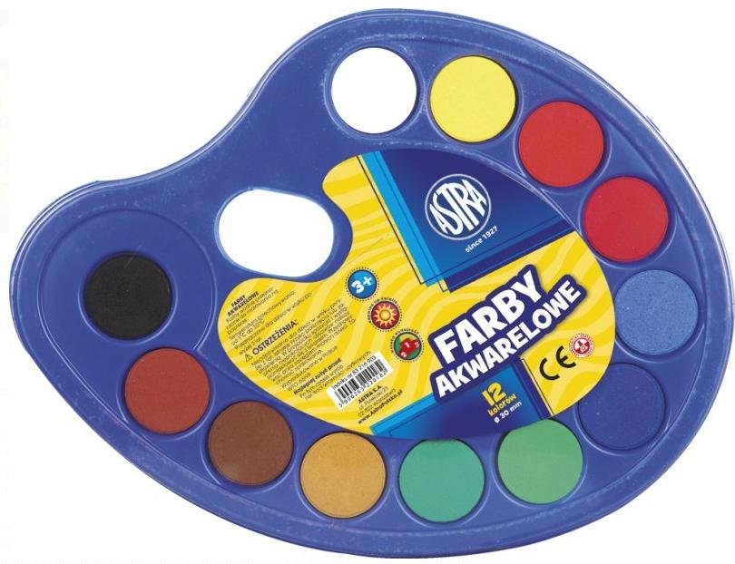 Farby akwarelowe paletka fi 30mm 12 kolorów ASTRA