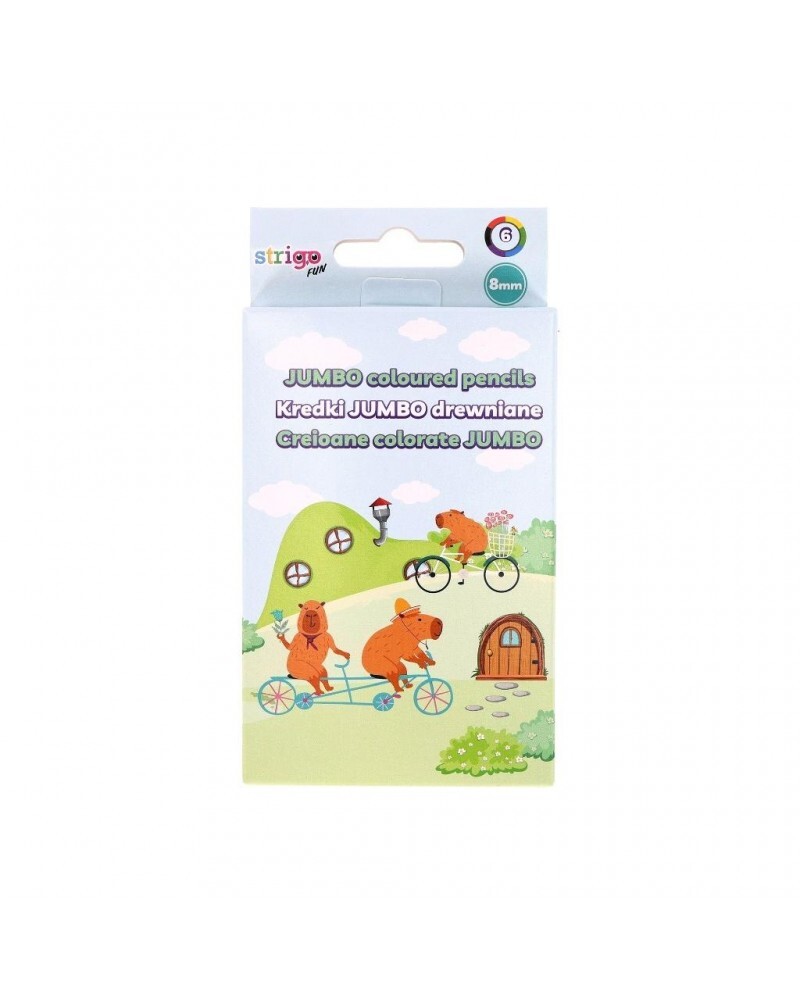 Kredki Jumbo z limitowanej serii Kapibara, w intensywnych 6 kolorach. Kredki wykonane z miękkiego drewna lipowego.Niezwykle poręczne i wytrzymałe.Doskonale sprzyjają usprawnianiu motoryki małej u dziecka.Pozwalają na kreślenie wyrazistych linii.Posiadają wewnętrzny grafit o grubości 8,0 mm. . przeczytaj całość