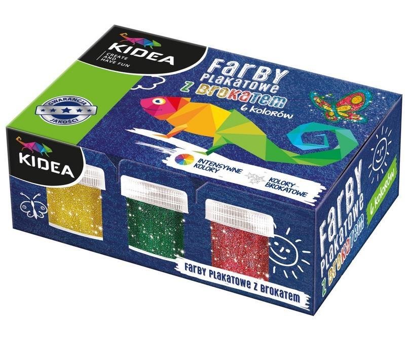 Farby plakatowe z brokatem 6 kolorów x 20ml KIDEA