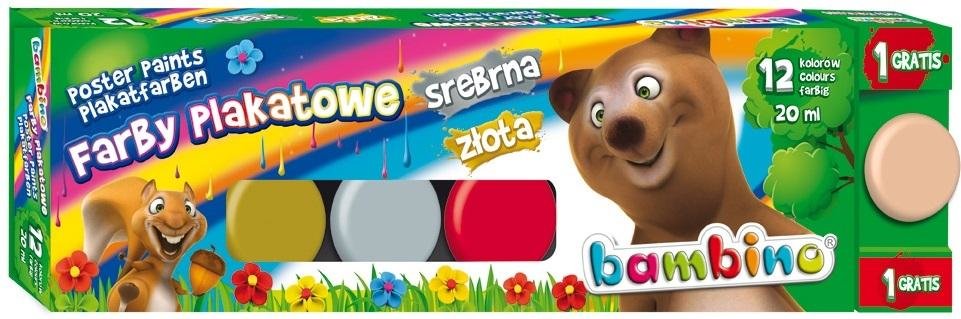 Farby plakatowe 12 kolorów 20ml BAMBINO