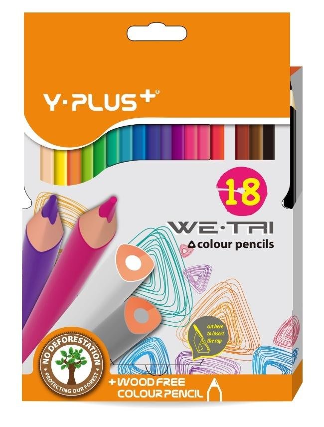 Kredki bezdrzewne - 18 sztuk. Wygodne do postawienia i użytkowania pudełko-stojak z miejscem na imię i nazwisko dziecka. przeczytaj całość