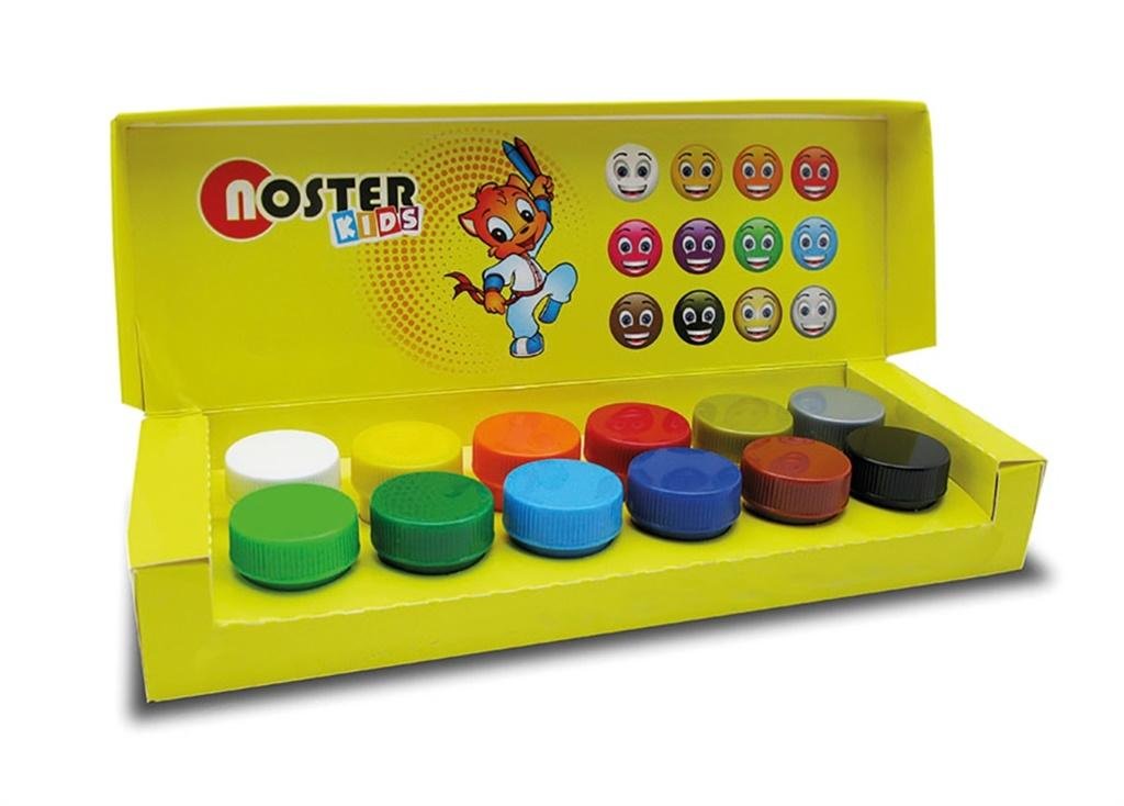Farbki plakatowe marki Noster. 12 kolorów, opakowanie zawiera kolor złoty. przeczytaj całość