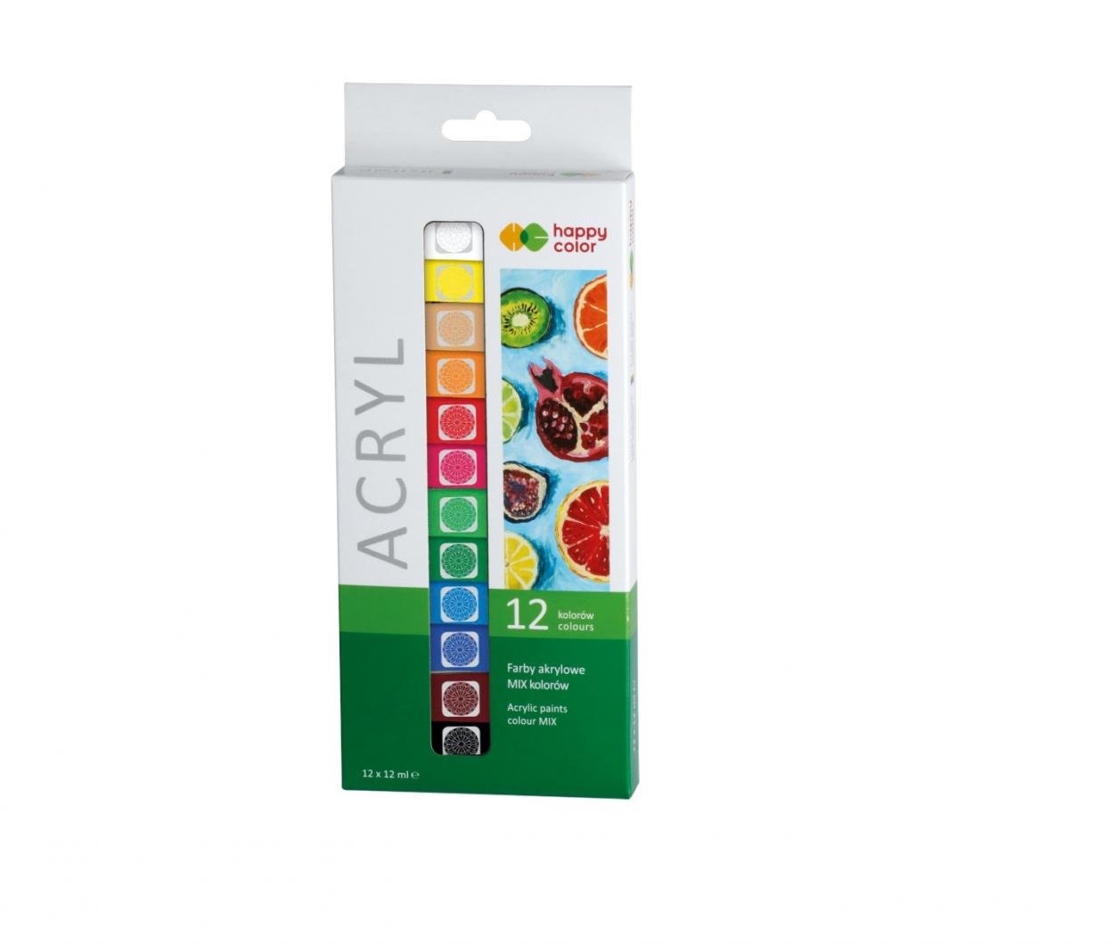 Farby akrylowe 12 kolorów HAPPY COLOR
