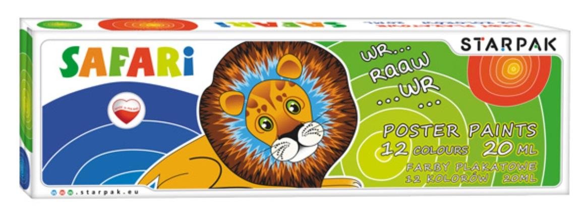 Farby plakatowe z kolekcji Starpak z licencją Safari. Farby w 12 intensywnych kolorach, rozwijające kreatywność małych twórców. Dzięki optymalnej konsystencji farby dokładnie pokrywają malowaną powierzchnię i mają długi okres trwałości. Piękna szata graficzna inspiruje małych malarzy. Każdy...