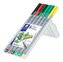 Cienka końcówka, wzmocniona metalową obudową, idealna do kolorowanek. Ergonomiczna obudowa o przekroju w kształcie trójkąta zapewnia wyjątkowy komfort pisania. Atrament może pozostać otwarty do kilku dni i nie wyschnie. Atrament na bazie wody, spieralny z większości tekstyliów. Grubość linii pisania: 0.3 mm.