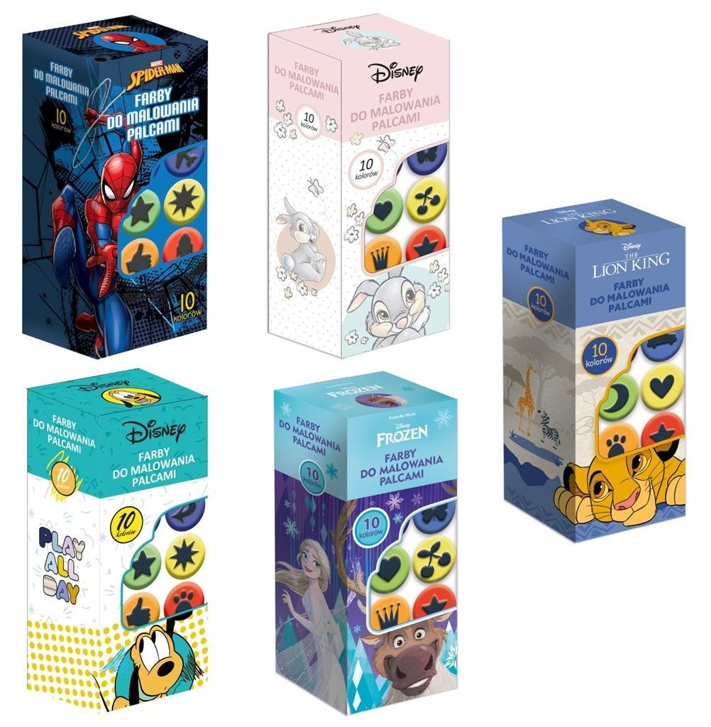 Miks 5 wzorów, towar wysyłany losowo. Cena za sztukę.Zestaw farbek dla dzieci przeznaczonych do malowania palcami. W opakowaniu 10 sztuk w różnych kolorach. Przy każdym pojemniku pieczątka. przeczytaj całość