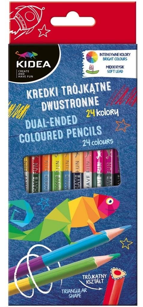 Kredki trójkątne dwustronne 24 kolory KIDEA