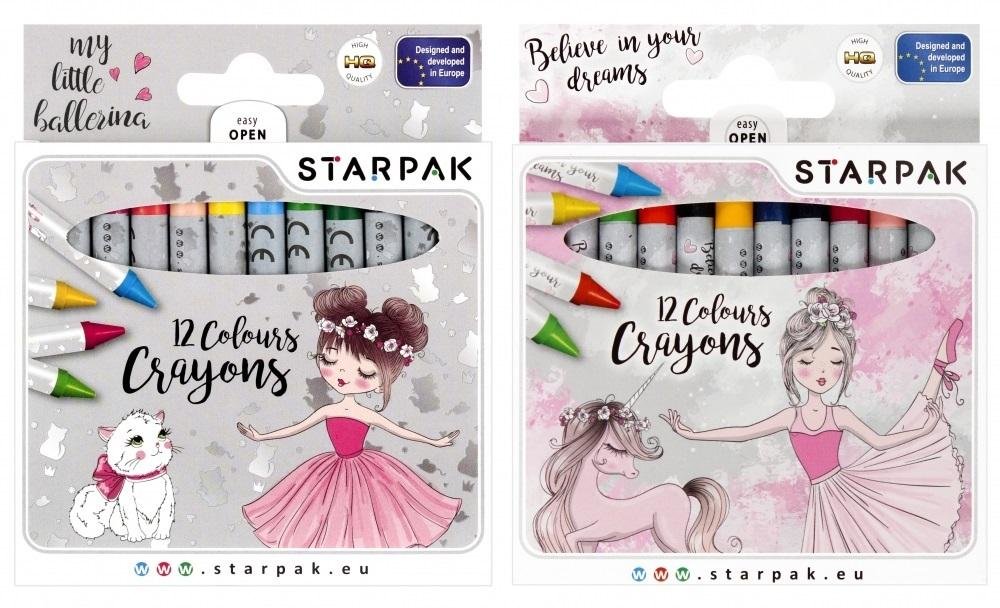Mix opakowań. Towar wysyłany losowo.Nie łamią się podczas rysowania ani strugania, dobrze kryją malowaną powierzchnię. Zestaw 12 kredek woskowych w żywych barwach idealnych dla najmłodszych artystów, którzy dopiero zaczynają malować. Zawartość zestawu: 12 szt. kredek woskowych. Wykonany z...
