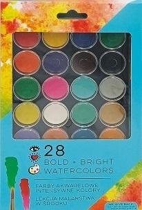 Odkryj nieograniczone możliwości zabawy kolorami i twórz własne, oryginalne obrazy. Wygodny, kompaktowy zestaw 28 farb akwarelowych w pięknych, żywych odcieniach każdemu użytkownikowi pozwoli wyrazić swoją kreatywność. Komplet zamknięty jest w plastikowym etui chroniącym farby przed wysychaniem...
