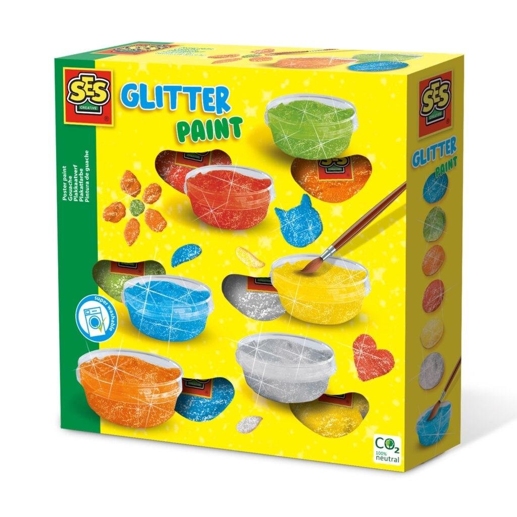 Twórz najpiękniejsze dzieła sztuki z brokatem za pomocą tej farby plakatowej od SES. Ten zestaw zawiera sześć jasnych kolorów z pięknymi brokatami. Błyszczące drobinki w farbie sprawiają, że wszystko co malujesz, jest jeszcze piękniejsze! Farbę gwaszową SES łatwo zmywa się z większości tekstyliów. przeczytaj całość