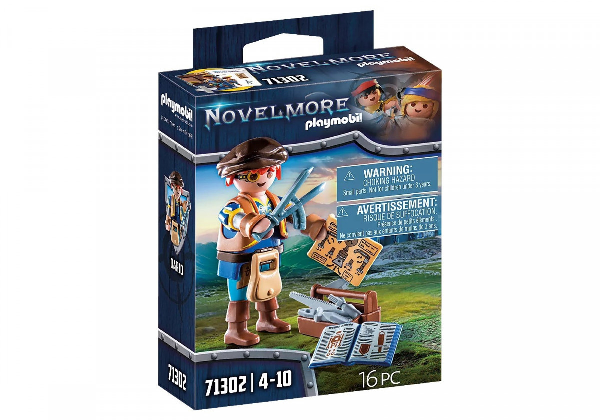 - 16-częściowy rycerz zawiera postać Dario z powieści Novelmore z kapeluszem, torbą, planem, książką, skrzynką z narzędziami i innymi dodatkami zapewniającymi ekscytującą zabawę w rycerza. Mankiety na ramiona, nakrycie głowy i saszetkę można zdjąć. Dodatkowo do zestawu dołączone są świetne naklejki i karta kolekcjonerska Dario. Baw się tym zestawem samodzielnie lub połącz z innymi zabawkami rycerzy ze świata Novelmore.