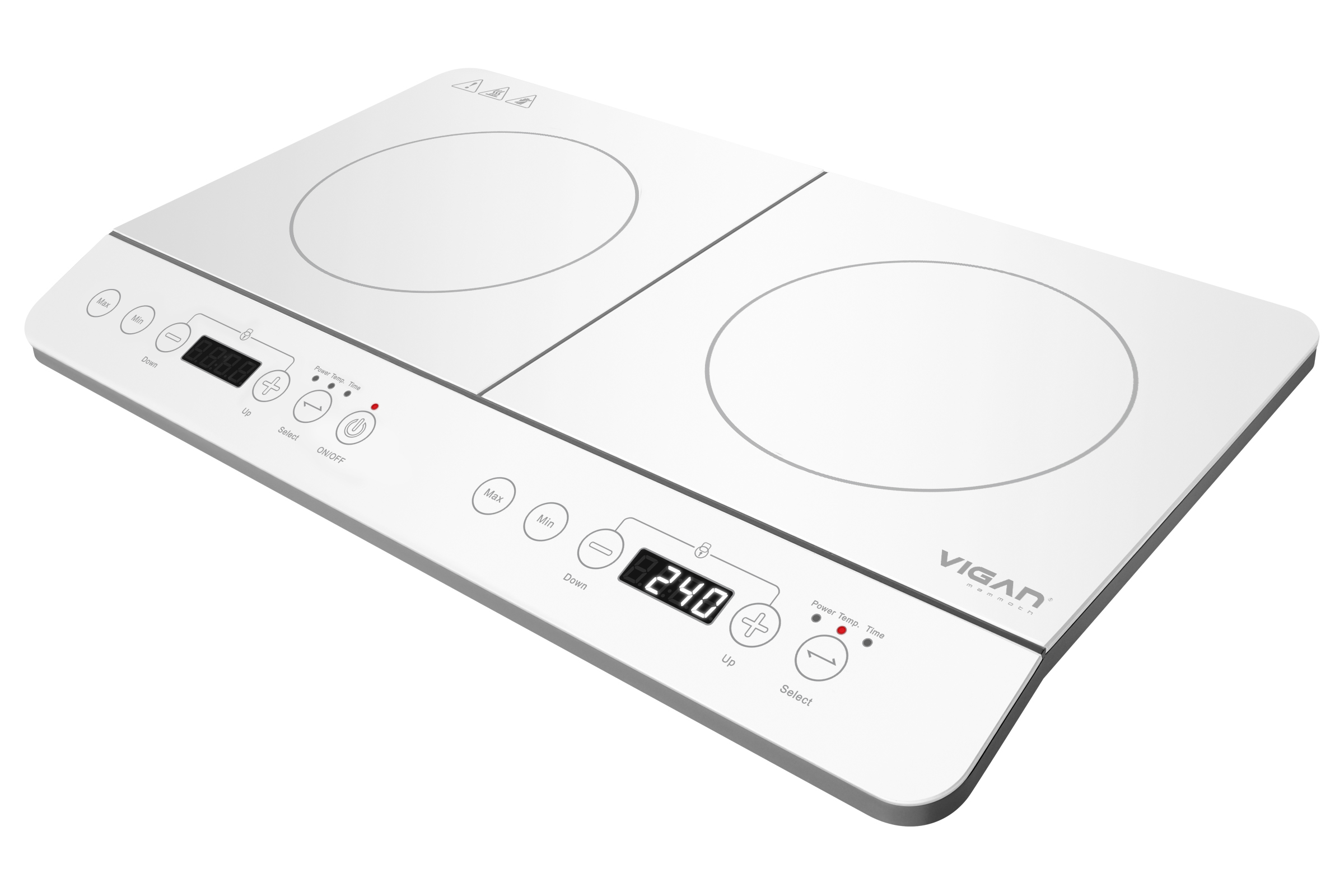 Indukční vařič dvouzónový, speciální sklokeramický povrch v bílém provedení, dvě nezávislé varné zónyLevá od 500 do 2000W, pravá od 500 do 1500W, šetří váš čas a el. energii, velmi rychlý a rovnoměrný ohřev, 10 přednastavených stupňů ohřevu od 60-240°C, automatická detekce vhodného nádobí, šikmý...