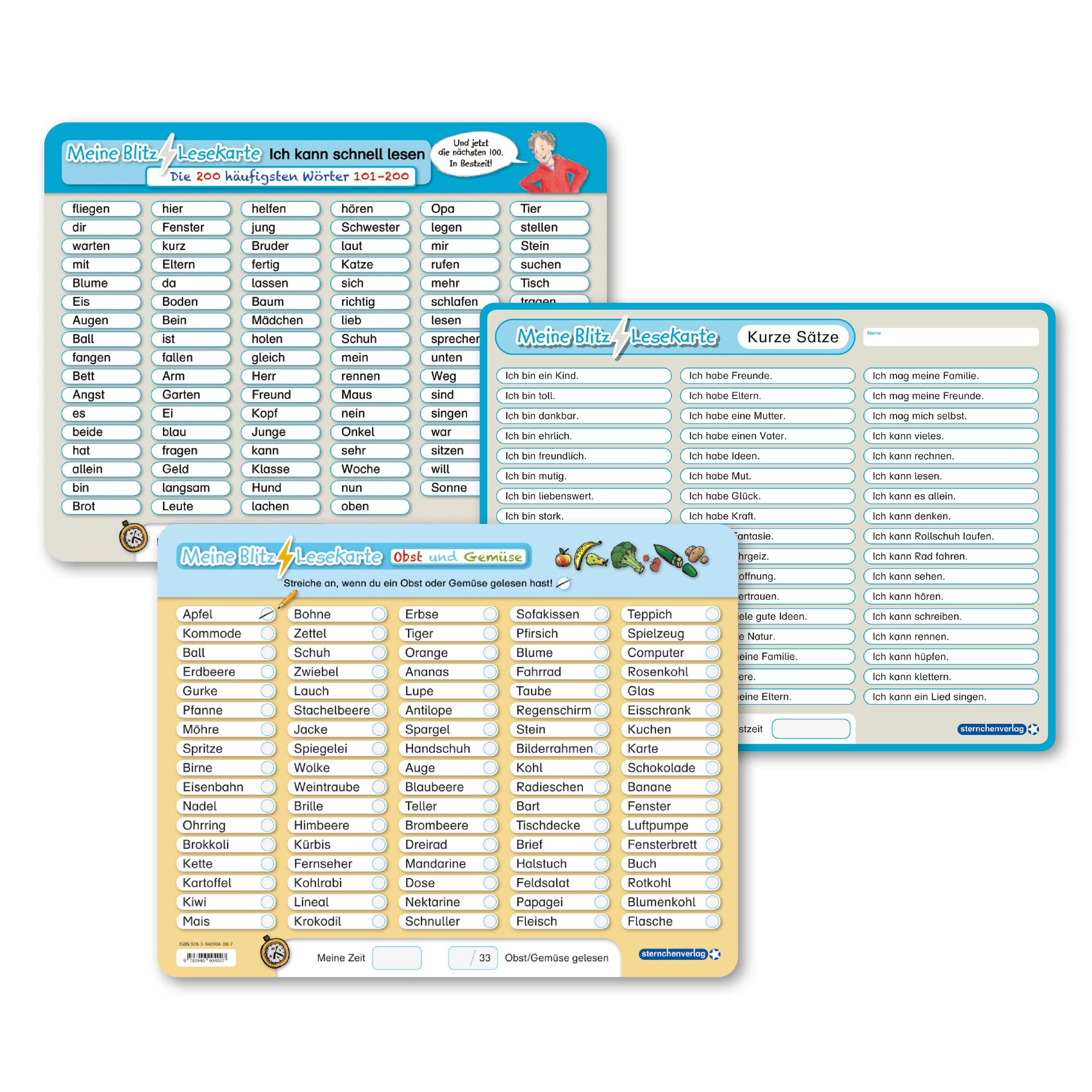 3 Blitzlesekarten im Set - 200 häufigste Wörter - Sätze - Suchwörter (niemiecki)