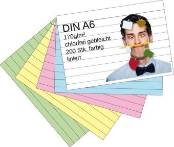 - Karteikarten 200 Stück A6 liniert farbig sortiert (5 Farben je 40 Stück) sehr praktisch für eigene Einträge wie zum Beispiel Telefonnummern, Adressen usw. - Format DIN A6, 10,5 x 14,8 cm (Höhe x Breite) - Farben: weiß, desert-gelb, coral-rosa, eisblau, forest-grün (waldgrün) - Lineatur liniert - Grammatur 160 g farbiges Papier, 170 g weißes Papier - FCS- und PEFC-zertifiziert - 100% chlorfrei gebleicht Weitere Karteikarten, die Sie auch interessieren könnten: - Formate DIN A8, DIN A7, DIN A6 - Lineaturen blanko, kariert, liniert - Verpackungseinheiten á 200 Karten, 500 Karten, 1000 Karten, 2000 Karten