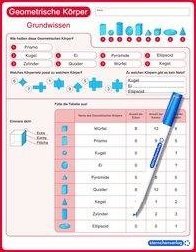 Geometrische Körper - Grundwissen - wiederbeschreibbare Lerntafel mit Stift (niemiecki)