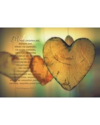 Kartka składana z kopertą.Kartka zawiera tekst z I Listu do Koryntian 13,4-7Miłość cierpliwa jest, łaskawa jest. Miłość nie zazdrości, nie szuka poklasku, nie unosi się pychą; nie jest bezwstydna, nie szuka swego, nie unosi się gniewem, nie pamięta złego; nie cieszy się z niesprawiedliwości, lecz...