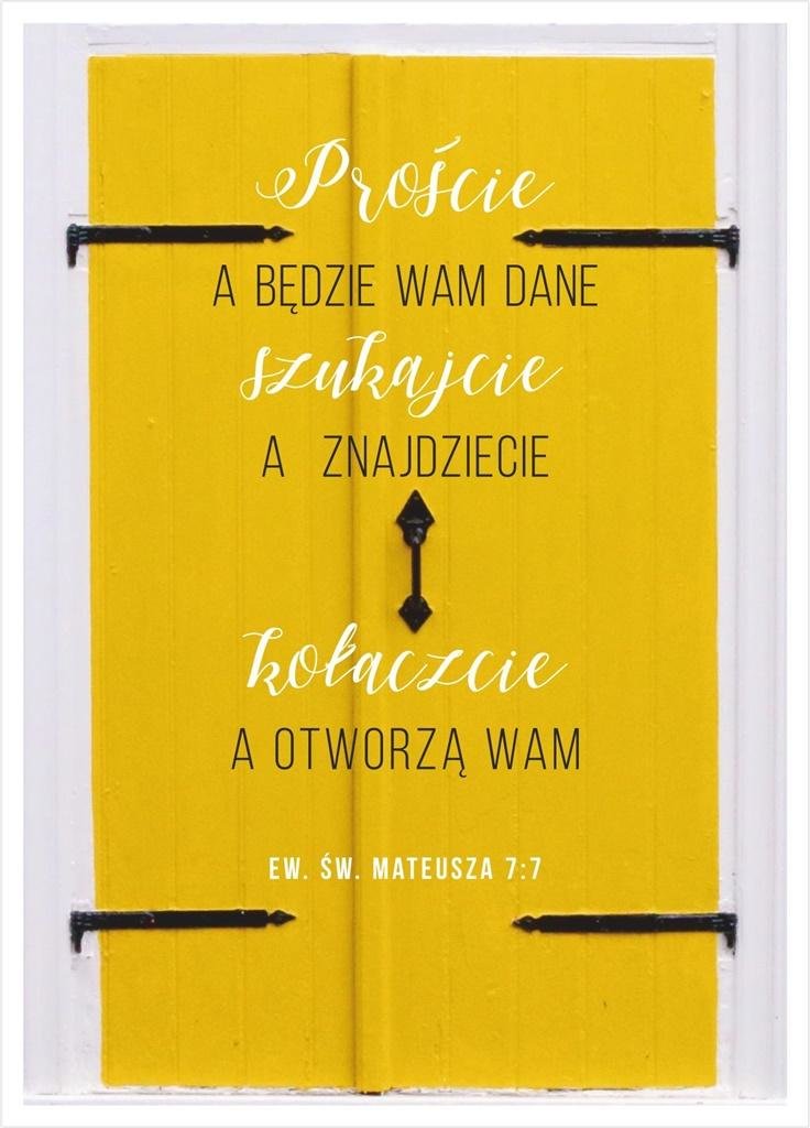 Proście, a będzie Wam dane; szukajcie, a znajdziecie; kołaczcie, a otworzą Wam.Kartka okolicznościowaskładana z kopertąFormat: C6 (114x162)Tekst w środku: brak przeczytaj całość