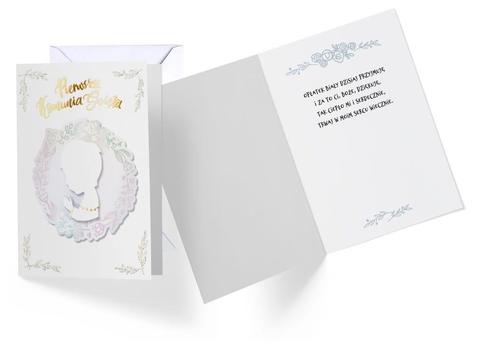 Kartka B6 z ozdobnej serii Dream Cards na Komunię - nieduża, ale robi wrażenie dzięki atrakcyjnej kolorystyce i ciekawym zdobieniom. To idealny wybór łączący przyjazną cenę z jakością. Cechy szczególne: wielkość: B6, 16.6 x 11.7 cm po złożeniu, koperta: w zestawie, kolorowa, zdobienia:...