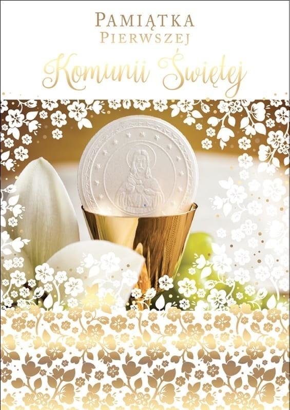 Kartka wielkości B6, zdobiona w zależności od wzoru metaliczną folią lub brokatem, kartka z tekstem w środku, kolorowa w środku i na zewnątrz. przeczytaj całość