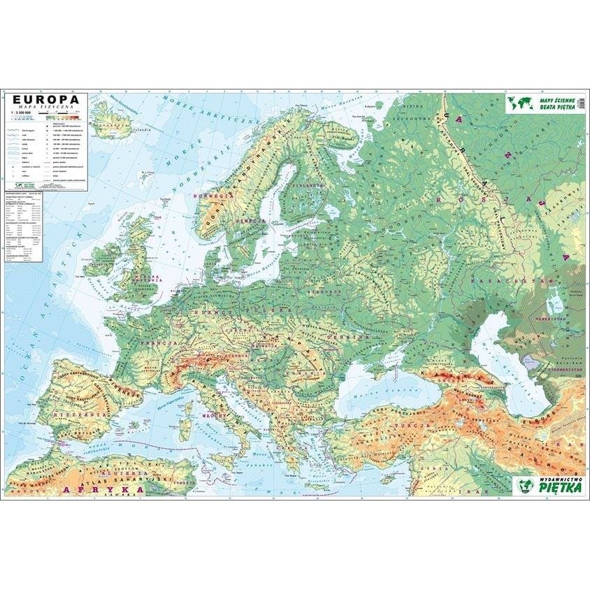 Mapa ścienna Europy. Fizyczna konturowa 1:3,3