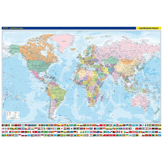 Ideální výzdoba každé kanceláře. Politické uspořádání států a závislých území celého světa, včetně všech hlavních a dalších významných měst. Mapa je doplněna vlajkami všech nezávislých států a rejstříkovými odkazy. Aktualizována byla v červnu 2017. laminovaná mapa s lištou, v tubusu všech 193 členských států OSN s hlavními městy nezávislá, závislá, autonomní a sporná území vlajky všech nezávislých států