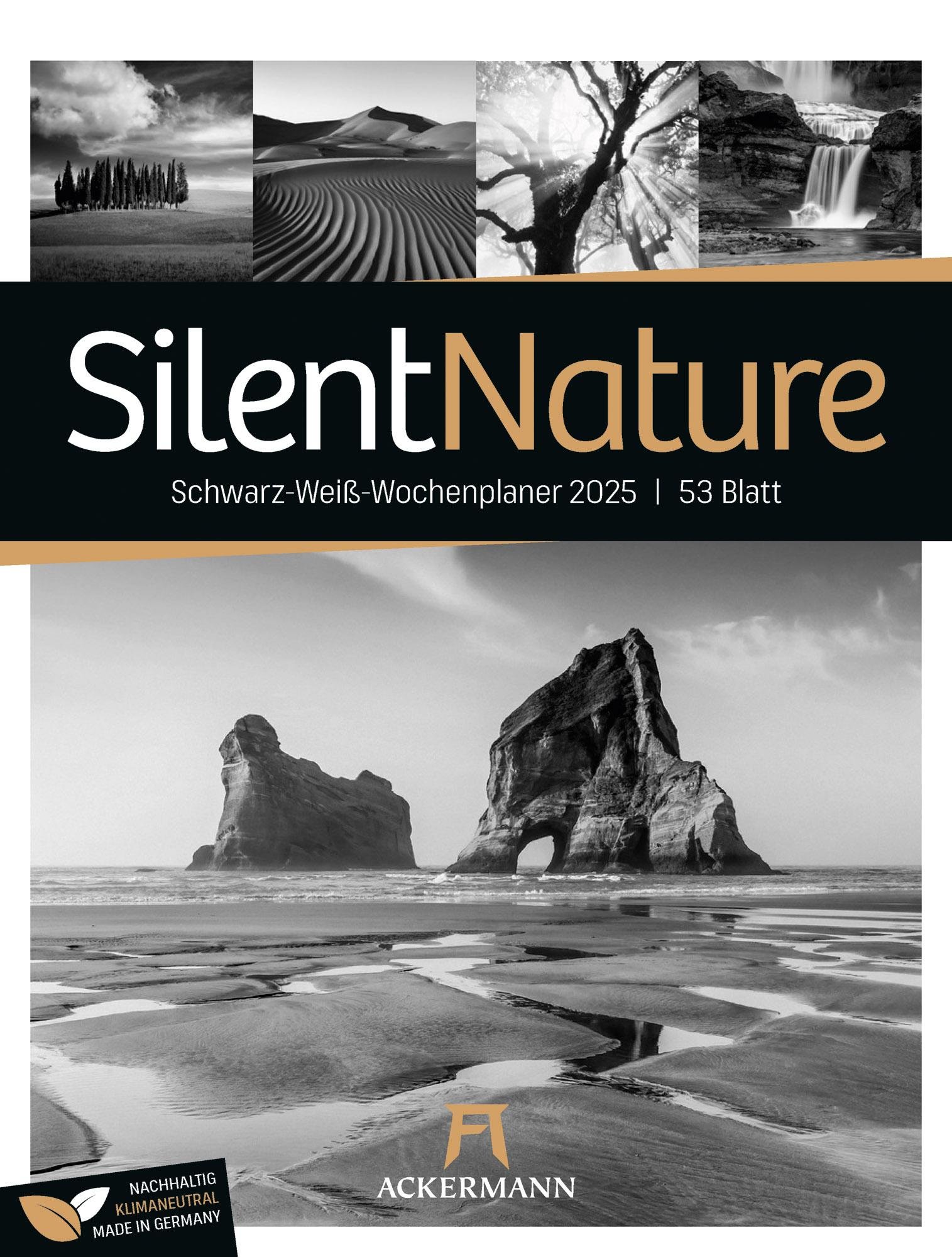 Silent Nature - Schwarz-Weiß-Wochenplaner Kalender 2025 (niemiecki)
