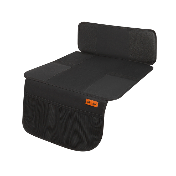 Mata pod fotelik samochodowy ochroni tapicerkę samochodową przed zniszczeniem lub zamoczeniem. Wykonana z bardzo mocnego materiału, który ma właściwości wodoodporne i antypoślizgowe. Łatwy montaż - wystarczy rozłożyć ją na siedzeniu i umieścić tylny element pomiędzy oparciem a siedziskiem, aby zapobiec przesuwaniu maty. Na dole znajdują się praktyczne kieszenie np. na produkty higieniczne lub drobiazgi dziecięce. Mata zabezpiecza całe siedzisko, aż do samego dołu, dzięki czemu dziecko nie ubrudzi tapicerki bucikami.