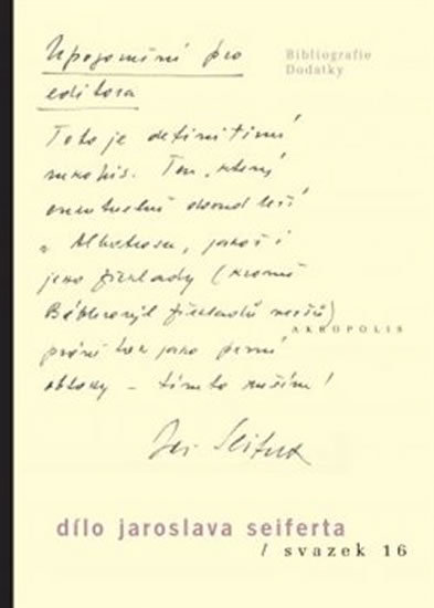 Bibliografie Jaroslava Seiferta uzavírá šestnáctisvazkové Dílo Jaroslava Seiferta soupisem veškerého Seifertova díla i literatury o jeho životě a tvorbě. Bibliografie shrnuje primární i sekundární literaturu v maximálním možném rozsahu, a představuje tak důležitý zdroj pro další seifertovská...