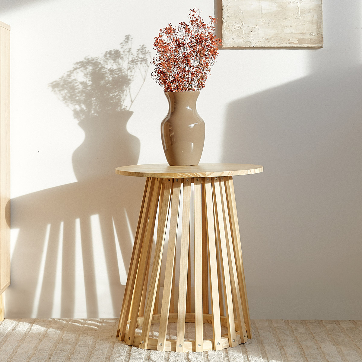 Stabilna konstrukcja z drewnaOryginalna podstawa ze szczebelkami Lekki, naturalny designDoskonale pasuje do jasnych wnętrzDrewniany stolik kawowy z okrągłym blatemStolik kawowy HOMLA ALMOBA doskonale dopełni wystrój strefy wypoczynkowej w Twoim domu. Wspaniale będzie się prezentował w otoczeniu...