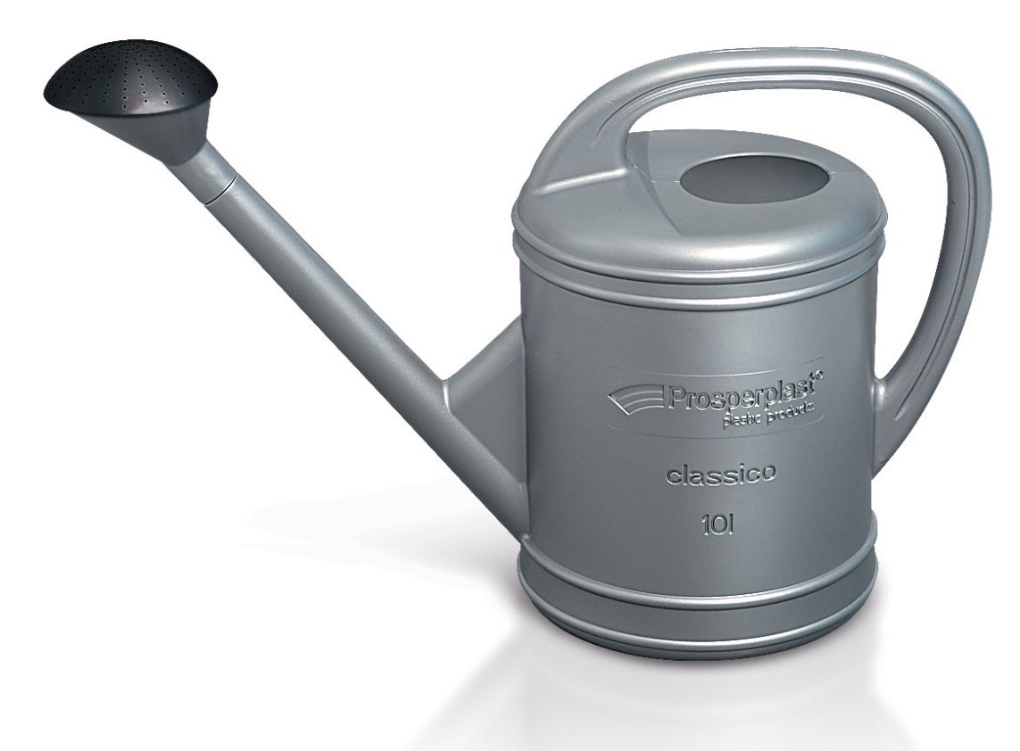 Nowoczesna plastikowa konewka ogrodowa. W komplecie znajduje się sitko do podlewania. Materiał: plastik Kolor: srebrny Wymiary: wysokość 29 cm szerokość 18,5 cm długość 40,6 cm pojemność 5 l przeczytaj całość