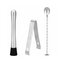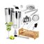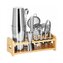 Profesjonalny zestaw do przygotowywania drinków, który zawiera 14 elementów. Stal nierdzewna, certyfikowany materiał przeznaczony do kontaktu z żywnością. Wysoka jakość wykonania, elegancka powierzchnia. Wytrzymały bambusowy stojak. Poprawia umiejętności barmańskie. Poszerza możliwości przygotowywania koktajli. Kompletny zestaw na każde przyjęcie.