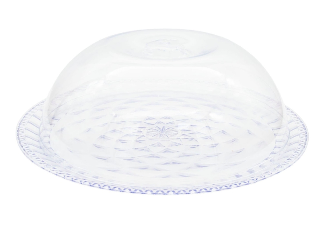 Stylowa i praktyczna taca z pokrywą, która odmieni każde przyjęcie. Ta plastikowa taca do serwowania z pokrywą o średnicy 34 cm jest idealnym pomocnikiem do łatwego i wygodnego serwowania ciast, ciasteczek, owoców lub innych przysmaków.
