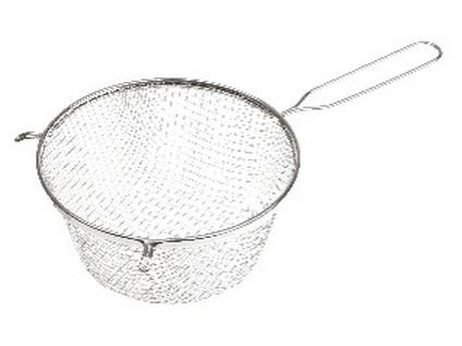 průměr: 20 cmoka: 8 x 8 mmKoš na smažení pomfritů. Používá se ke smažení pomfritů ve fritézách nebo v hrnci. Vyroben z ocelového pomfritového tkaniva s oky, plechu na obrubě a drátu. Držadlo má háčky pro případné zavěšení nebo zachycení jak ve fritovacím hrnci tak na dřezu při cedění. Galvanicky... przeczytaj całość