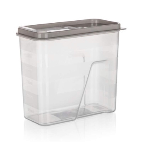 Miarka co 250 ml na ściance pozwala na precyzyjne dozowanie bez potrzeby używania dodatkowych miar. Wieczko w eleganckim kolorze latte doskonale dopełnia wygląd pojemnika, a jednocześnie szczelnie go zamyka, chroniąc przed wilgocią i niepożądanymi zapachami.