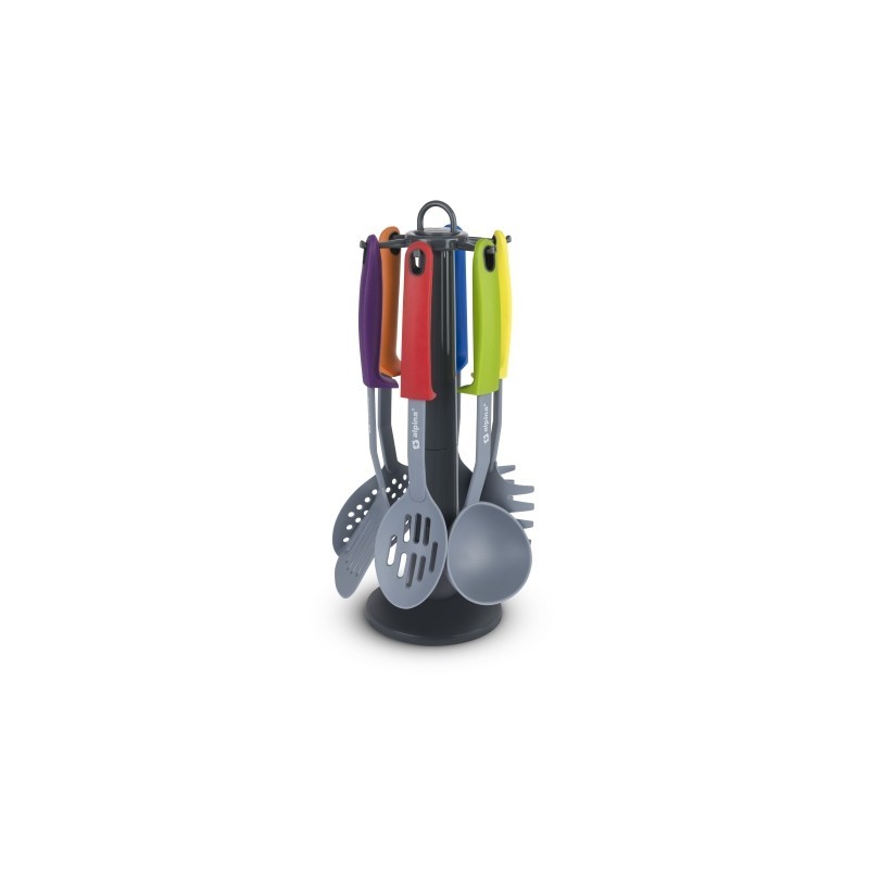 Sada kuchyňských pomocníků 7 kusů. Nylonový barevný otočný stojan na vaření příborů kuchyňské náčiní.S touto sadou kuchyňského náčiní z nylonu máte vše, co potřebujete k rychlé a snadné přípravě jídla. Otočný stojan zajišťuje prostorově úsporné skladování a přehled. Kuchyňské pomocníky lze mýt v...