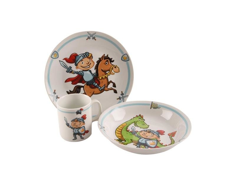 Specjalnie zaprojektowany zestaw naczyń z motywem rycerza wnosi do domowego stołowania zabawę i baśniowy klimat. Dzięki praktycznemu wzornictwu jest idealny do codziennego użytku, jak i na specjalne okazje. Pomoże dzieciom nauczyć się poprawnych zasad przy stole, a jednocześnie pobudzi ich wyobraźnię i tworzenie historii podczas posiłku.