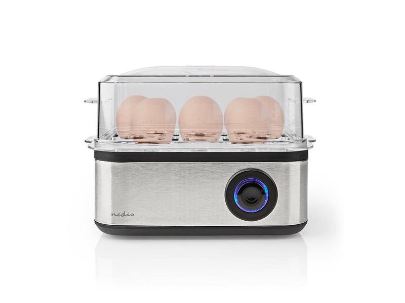 S tímto vařičem na vejce Nedis získáte za okamžik dokonale uvařená vejce na tvrdo, na měkko nebo na hniličku - dokonce i během hektického rána, nebo i když jste v kuchyni nováčkem. Stačí přidat správné množství vody pomocí dodané konvice. Do každého vejce propíchněte integrovaným propichovátkem na vejce na zadní straně konvice dírku, aby vejce během vaření nepopraskala. Ve vařiči je místo na 8 vajec. Pokud máte raději ztracená vejce, můžete použít přiložené plato na ztracená vejce a uvařit až 4 současně. Vařič na vejce sleduje čas a teplotu sám, a Vy tak během vaření můžete dělat cokoliv jiného. Když se rozezní bzučák, můžete si vejce vychutnat přesně tak, jak je máte rádi. Už žádná šedozelená barva žloutků kvůli převaření. Zahájit den vydatnou snídaní nebylo nikdy tak snadné!