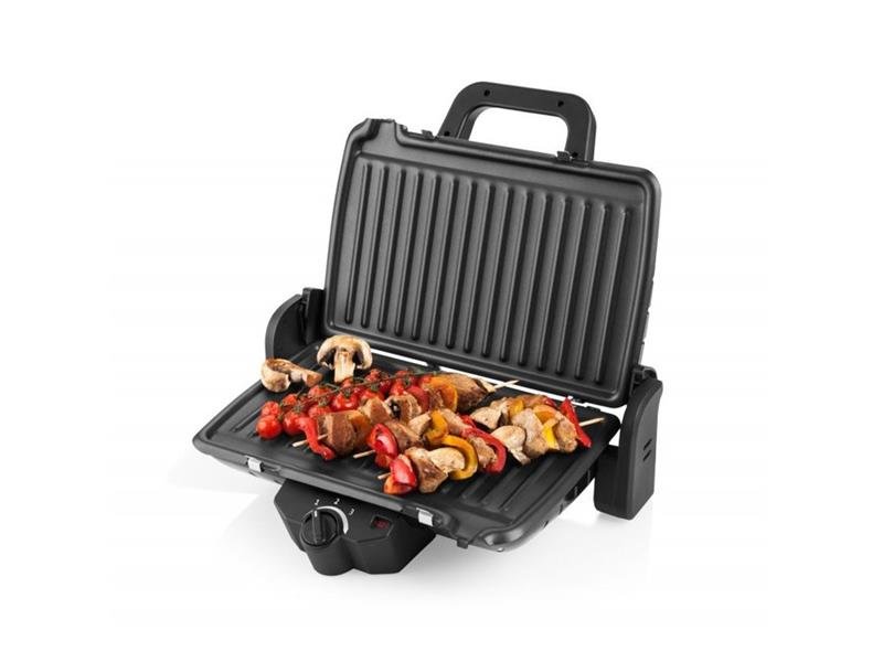 Grilování se často spojuje s letními měsíci a přípravou šťavnatého masa. Lahodný grilovaný oběd pro sebe i celou rodinu nebo hosty můžete však vytvořit kdykoliv během roku. Využijte k tomu praktický přístroj od společnosti ETA. Elektrický kontaktní gril nabízí tři provozní polohy. Při zavření působí teplý povrch na suroviny z obou stran, což využijete například při pečení toustů nebo masa. Pokud připravujete menší množství jídla, otevřete kryt na 90°. Po sklopení o 180° získáte dvojnásobně velkou otevřenou grilovací plochu, na kterou se vejde maso i zelenina pro všechny. Podle vlastních preferencí si jednoduchým ovládáním otočného regulátoru nastavte teplotu v rozmezí od 140 do 280 °C. Nepřilnavý povrch je jako stvořený pro zdravé vaření, přebytečná voda nebo tuk z masa je odváděn do dvou odkapních misek, které poté stačí jednoduše vytáhnout a umýt. Po skončení grilování nepřilnavé plotny z přístroje vyjměte a opláchněte pod vodou, nebo je vložte do myčky. Přístroj tak zůstane stále čistý a budete ho mít k dispozici, připravený k dalšímu použití.