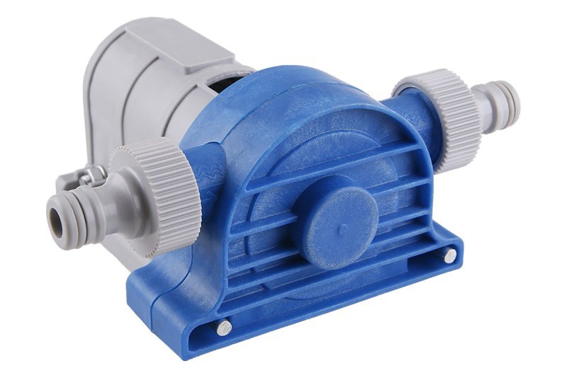 Plastowa pompa Festa do wiertarki ze ściskiem do przymocowania do podłoża. Nadaje się do pompowania zimnych lub ciepłych cieczy do 40 °C, np. wody użytkowej lub zanieczyszczonej z akwariów itp. Maksymalna wydajność 2400 litrów/godz. przy 3000 obr./min., przyłącze węża: zewnętrzny gwint 3/4" (dostarczane z króćcem do szybkozłącza). Maksymalne ciśnienie wylotowe: 3 atmosfery przy 3000 obr./min. Zasięg tłoczenia: max. 30 m. Liczba obrotów: max. 3400 obr./min.