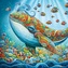 Przepiękna ilustracja wieloryba jako króla mórz z koroną na głowie oczaruje Cię swoją oryginalnością i fantazją.
