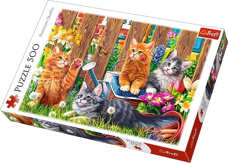 Puzzle 500 elementów - Kotki w ogrodzie.Wymiar obrazka: 48 x 34 cm. przeczytaj całość
