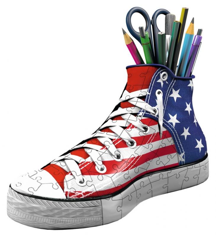 Prostě originální! Vytvoř si ze 108 silných plastových dílků puzzle tuto klasickou tenisku v moderním designu a získej perfektní dekoraci do svého pokoje! Po složení na tebe čeká další bonus: tenisku můžeš použít jako nádobu na štětce, tužky, propisky, atd. Tyto puzzle mají svůj účel! Obsah: 108 očíslovaných kousků puzzle + 3 ks příslušenství + návod. Obsah tenisky není součástí balení. Doporučený věk 8+