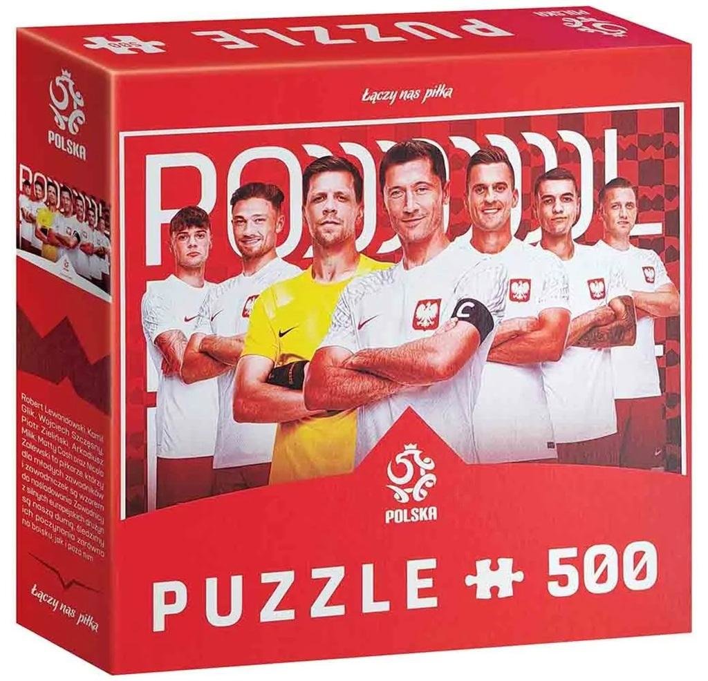 Puzzle 500 elementów PZPN zawodnicy Interdruk.Wymiary ułożonego obrazka: 47 x 33 cm.Wyprodukowane z trzywarstwowego, solidnego kartonu Blue Board.Elegancka powłoka o fakturze lnu.Solidne i trwałe pudełko do przechowywania o rozmiarze 25,4 x 25,4 x 6 cm.Produkt wysokiej jakości.Wyprodukowano w... przeczytaj całość