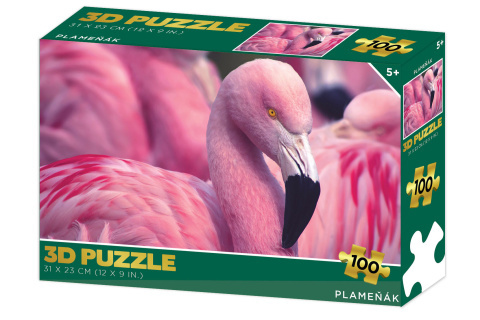 3D puzzle s motivem plameňáka. Balení obsahuje 100 dílků. Rozměry balení 23x15x5 cm. Rozměry složeného obrázku 31x23 cm. Věk 5+ przeczytaj całość
