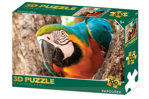 3D puzzle s motivem papouška. Balení obsahuje 100 dílků. Rozměry balení 23x15x5 cm. Rozměry složeného obrázku 31x23 cm. Věk 5+ przeczytaj całość