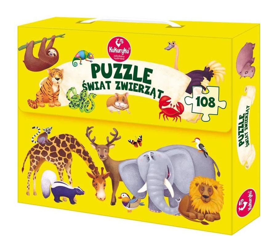 Świat zwierząt to puzzle przeznaczone zarówno dla najmłodszych jak i starszych dzieci - fanów układania. Puzzle składają się ze 108 elementów, na których przedstawiona jest bajecznie kolorowa mapa świata, ze zwierzętami zamieszkującymi poszczególne rejony.Gwarantowana świetna zabawa oraz nauka...