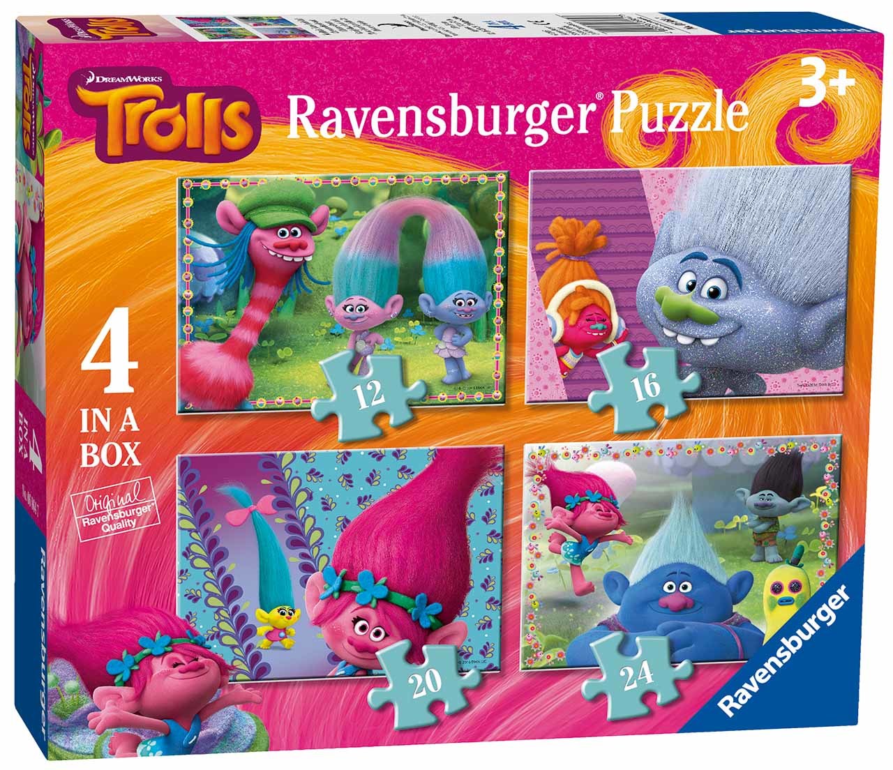 Dětské puzzle v licenci Trolls. V balení jsou 4 obrázky každý s jiným motivem. Obrázky jsou po 12, 16, 20 a 24 dílcích. Velikost složeného obrázku 19x14 cm. Baleno v krabici. Doporučený věk 3+ przeczytaj całość
