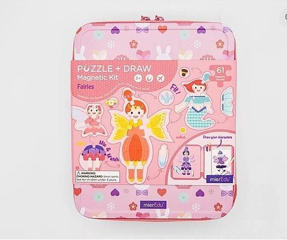 Barevné ilustrované plechové pouzdro nabízí zábavné magnety a aktivity založené na kreslení a hraní při cestách. V této sadě děti mohou kombinovat více než 50 kusů magnetických puzzle, aby vytvořily svou oblíbenou postavu a pomocí kreslící podložky k nakreslení svých fantastických výtvorů! Každá sada obsahuje 1x prázdný papírový blok, 4x oboustranné barevné tužky a 1x HB tužku.