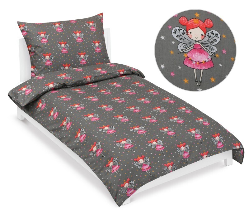 Povlečení bavlněné Junior - Víla šedá, růžová - 140x200, 70x90 cm